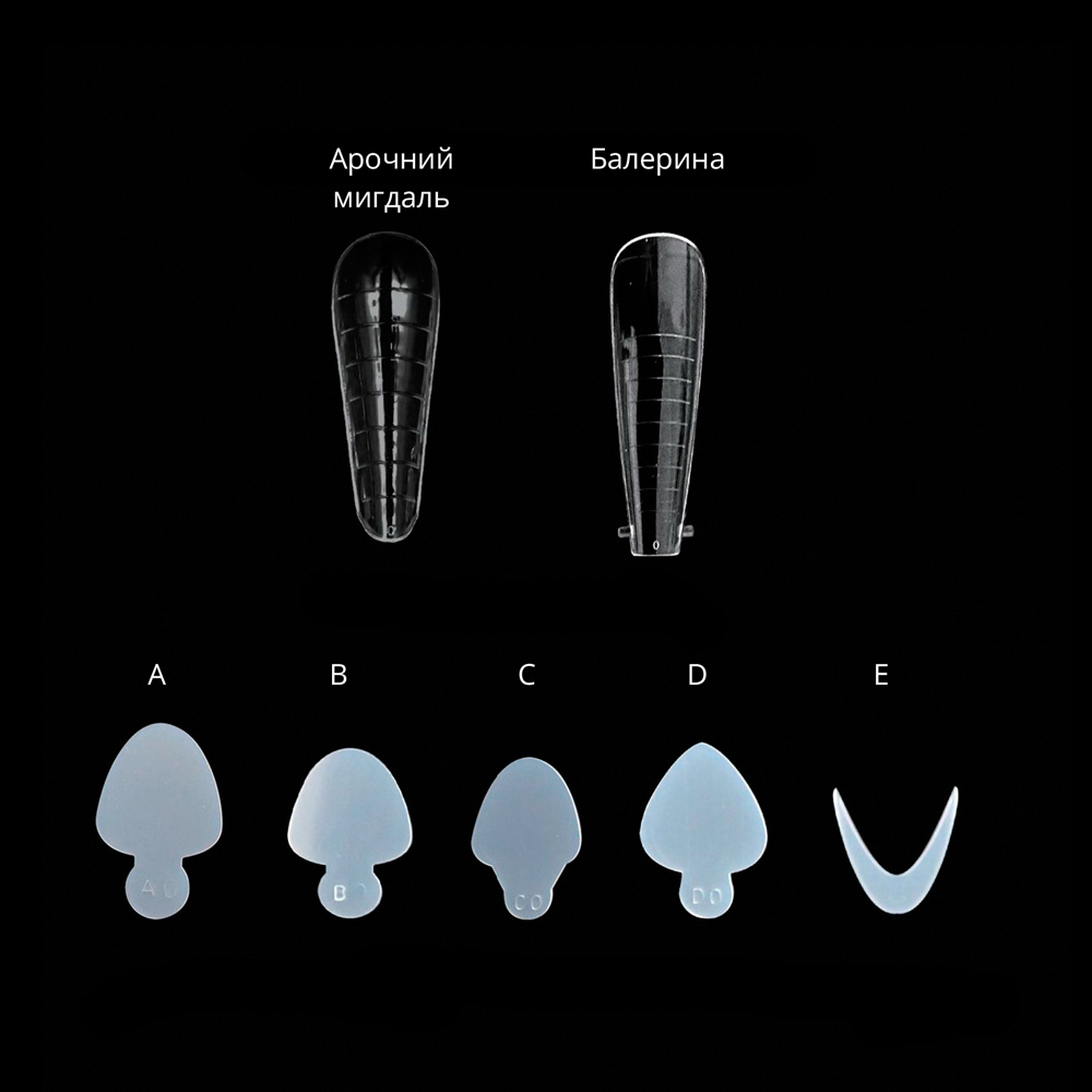 Форми для нарощування нігтів - прозорі, зручні в експлуатації, які дозволяють легко виконати нарощування з мінімальним опилом.