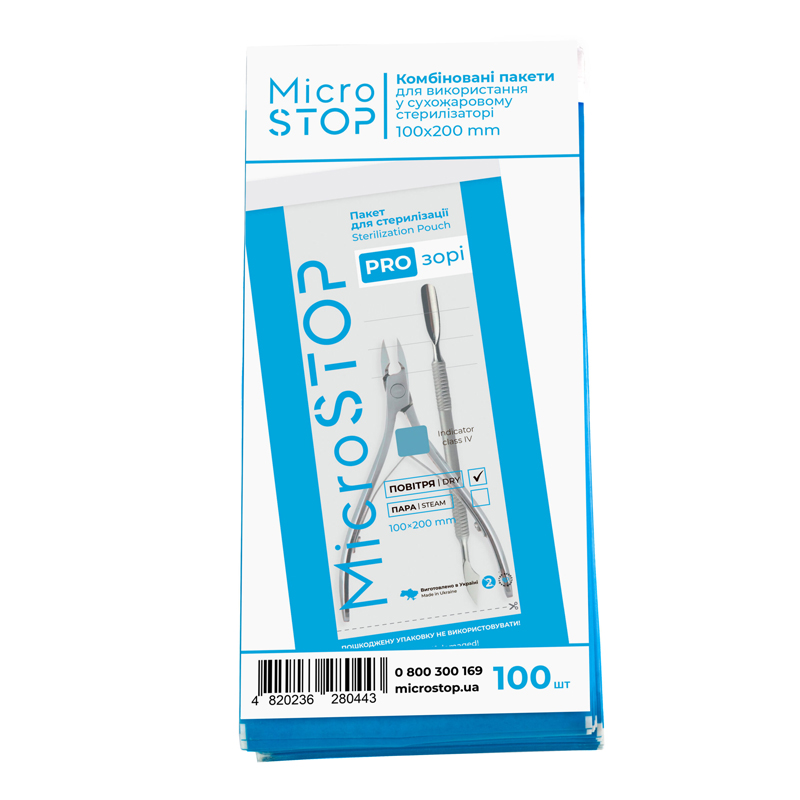 Крафт пакети для стерилізації Microstop Pro з білого паперу з індикатором IV класу 100х200 мм, 100 шт