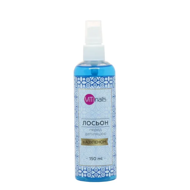 Лосьйон перед депіляцією ViTi Nails з азуленом М'яко очищає і знежирює шкіру, захищає від запалення, готує до депіляції воско...