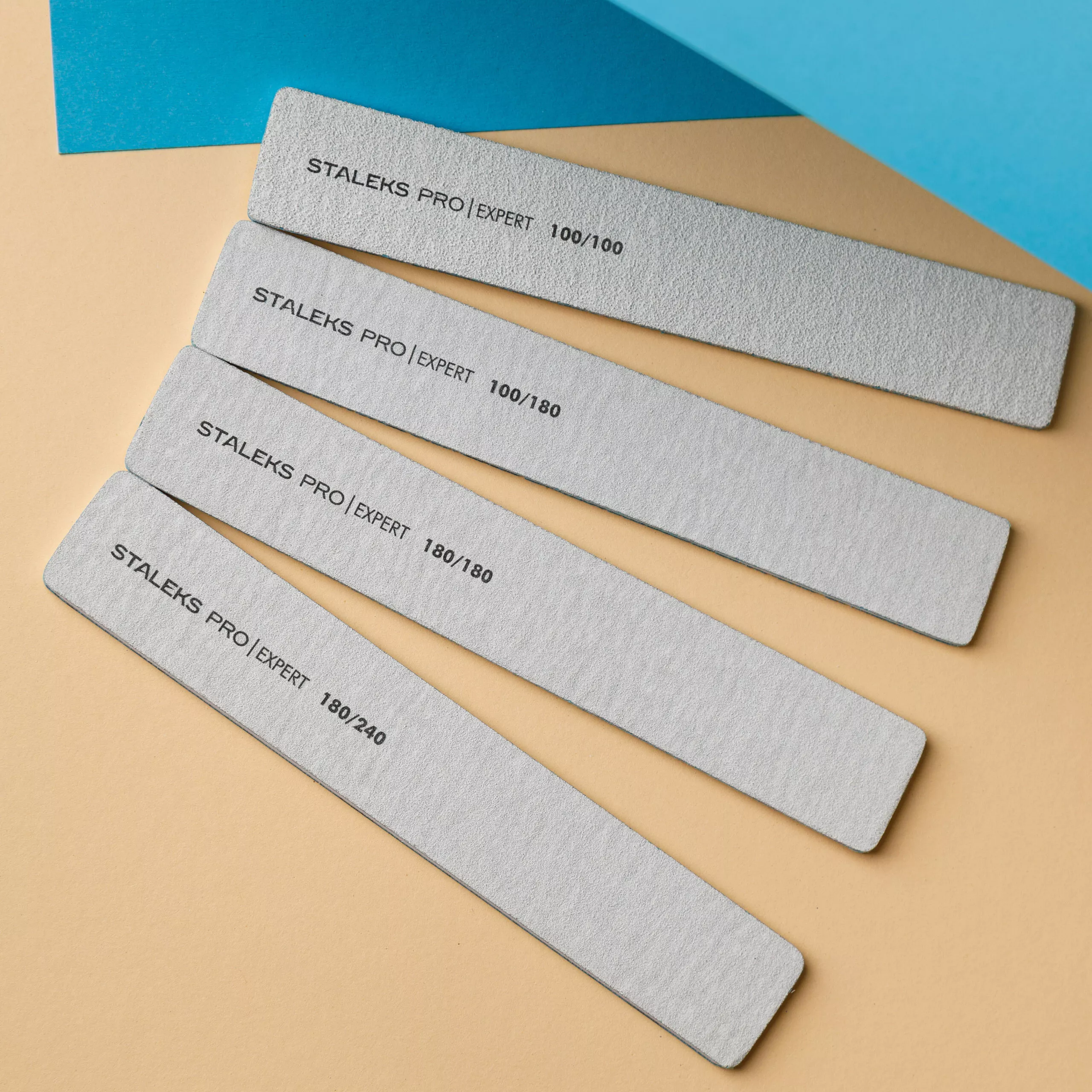 У пилки з абразивністю «180/240» одна сторона має жорсткість 180 грит. Це означає, що в квадратному сантиметрі поверхні міститься 180 твердих частинок. Така пилка підходить для міцного натурального нігтя.