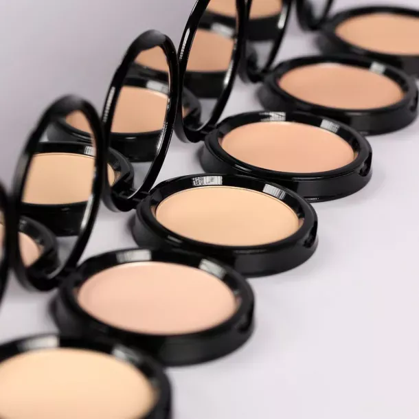 2. Нанесення пудри: Використовуючи спонж або кисть для макіяжу, нанесіть пудру рівномірним шаром на обличчя.