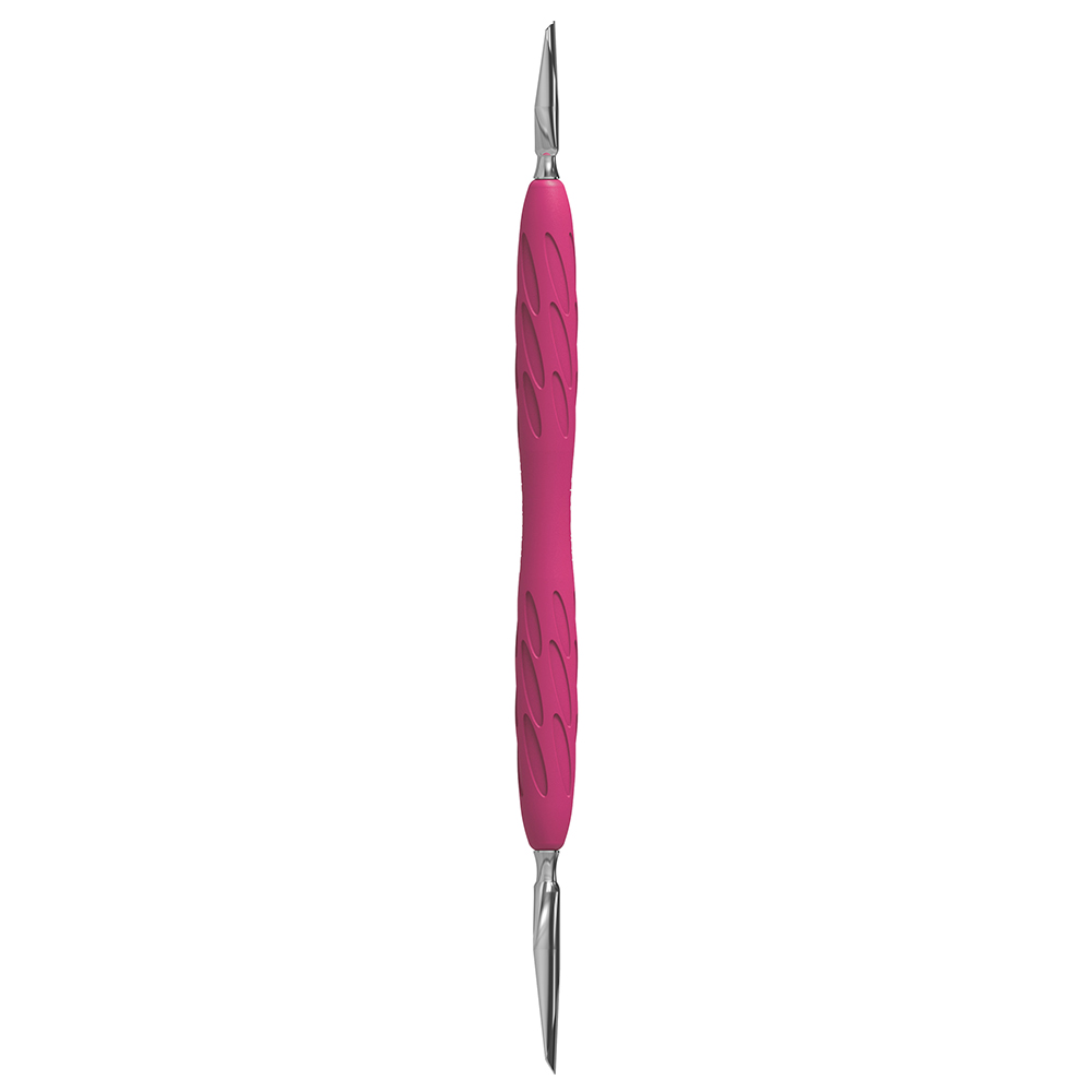 Ручка із силікону допомагає рівномірно розподілити тиск по поверхні пальця, запобігаючи пошкодженню шкіри та дискомфорту. Вона легше очищається та дезінфікується, що робить використання пушера в салонах краси максимально гігієнічним. Рожева насадка на ручці зручна для захоплення інструменту без ковзання, що дозволяє майстру працювати без напруги кисті руки.
