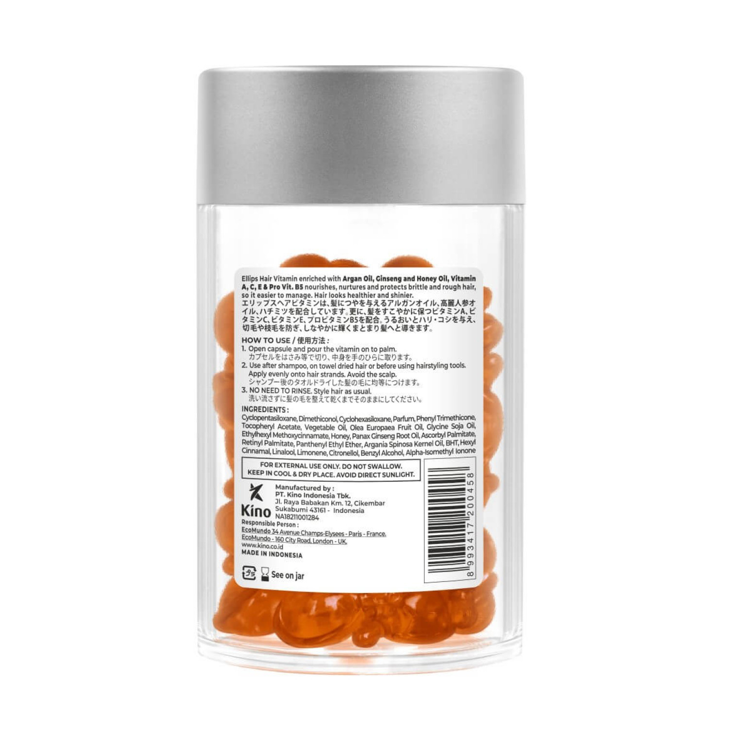 Арганова олія, вітаміни A, C, E і провітамін B-5 живлять, лікують, захищають і доглядають за ламким і неслухняним волоссям. Масло женьшеню робить волосся більш слухняним, мед пом'якшує і надає неймовірний блиск. Завдяки вітамінам волосся виглядає здоровим і доглянутим.