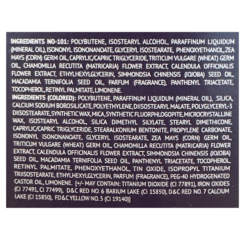 Насичений високоякісними маслами Jojoba, Macadamia, екстактами Chamomile, Marigold, що дозволяє йому доглядати за шкірою губ, роблячи їх м'якими і ніжними.