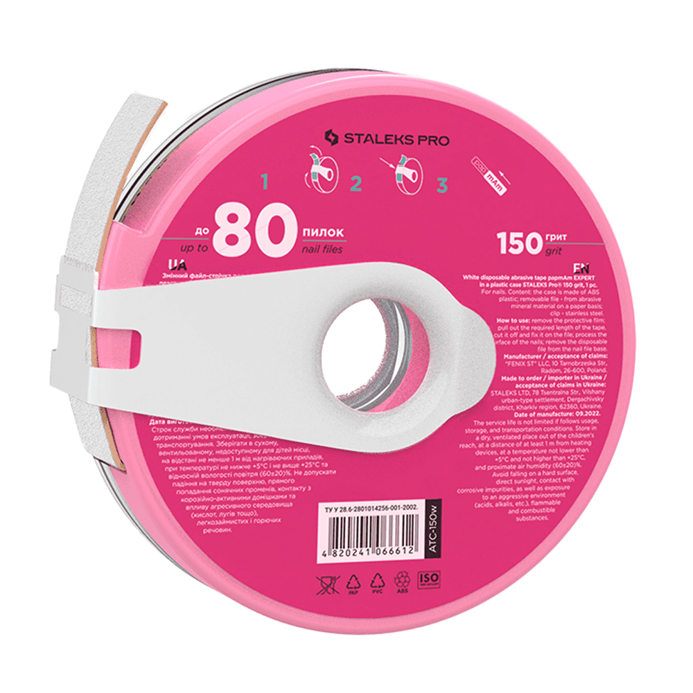 Змінний файл-стрічка білий papmAm з кліпсою 150 грит Staleks Pro BobbiNail Expert ATC-150w